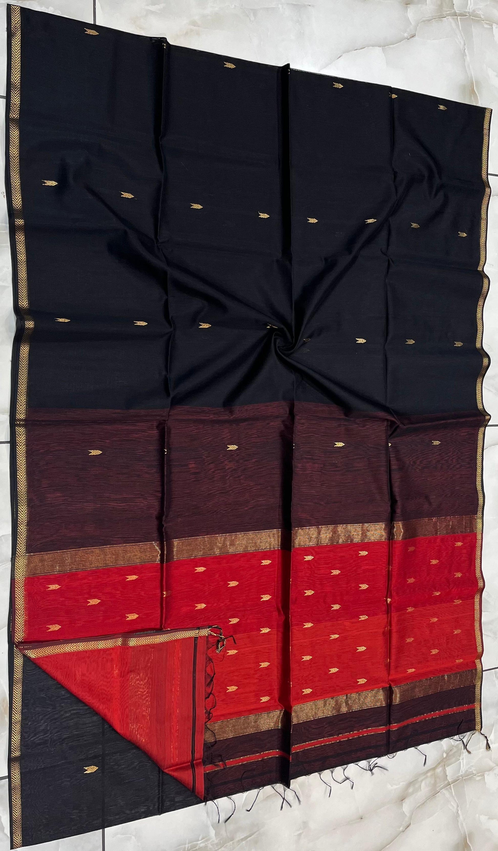 This Maheshwari saree is the perfect blend of elegance and tradition. Lightweight, breathable, and effortlessly graceful — it's handwoven with love and precision. The subtle sheen and classic zari border make it ideal for both festive and formal occasions. Style it your way or let the saree speak for itself. Dry clean only to preserve its beauty and craftsmanship.