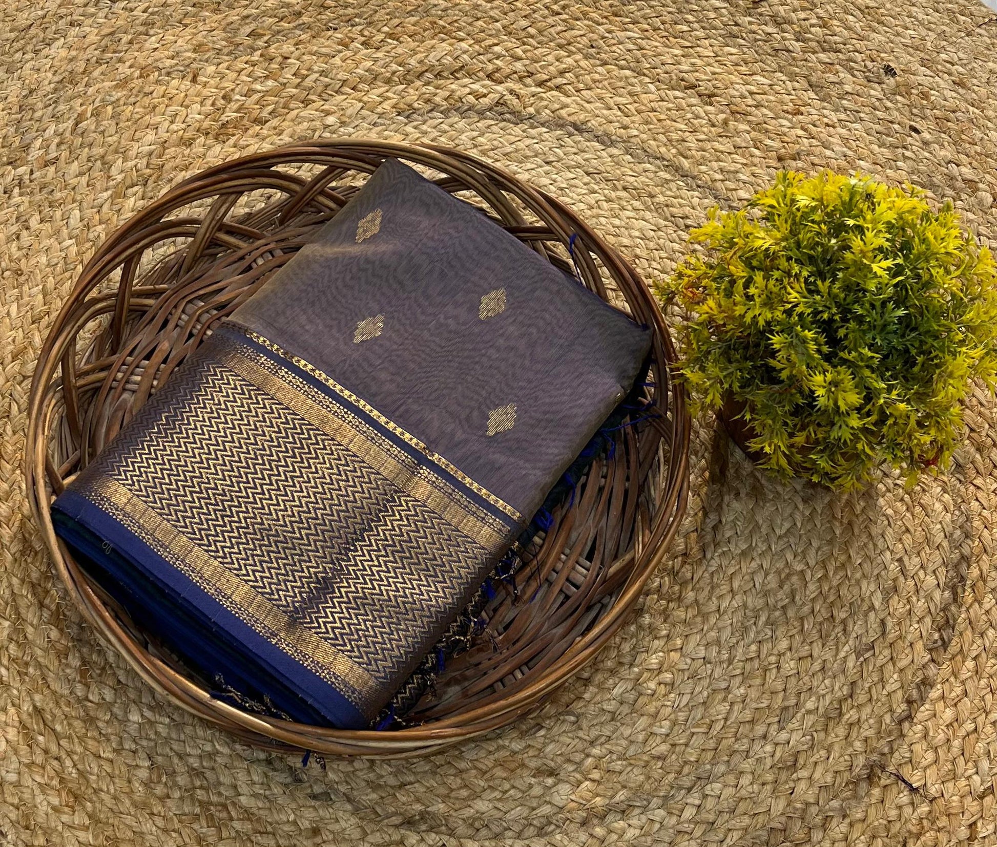 This Maheshwari saree is the perfect blend of elegance and tradition. Lightweight, breathable, and effortlessly graceful — it's handwoven with love and precision. The subtle sheen and classic zari border make it ideal for both festive and formal occasions. Style it your way or let the saree speak for itself. Dry clean only to preserve its beauty and craftsmanship.